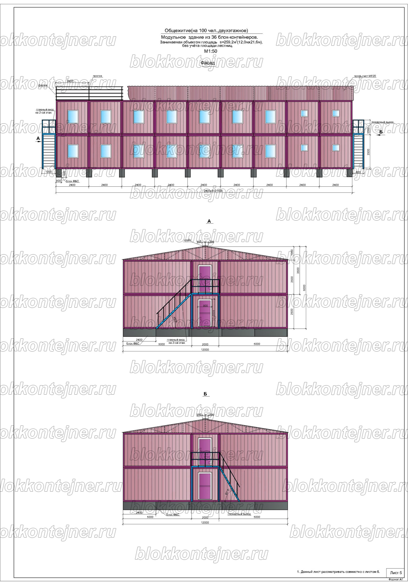 Двухэтажное общежитие из 36 БК, на 100 человек