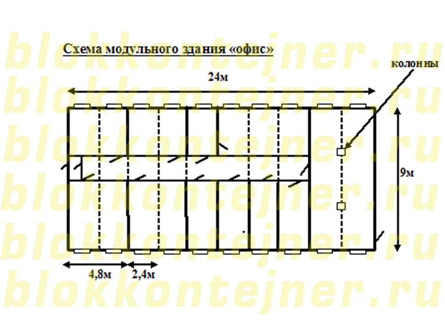 Модульное  здание  «офис»  24,0 *9,0*2,5м  состоит из 10 блок-контейнеров