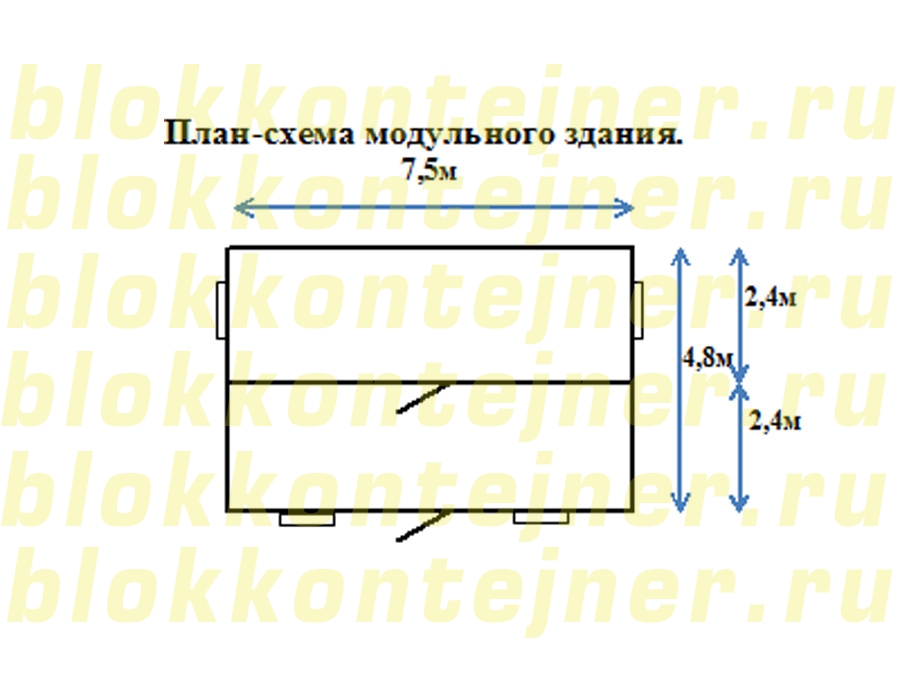 Модульное здание -  7,5 *4,8*2,5м  состоит из 2 шт. Блок-Контейнеров